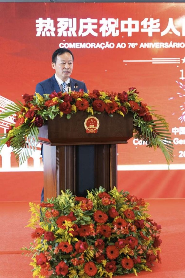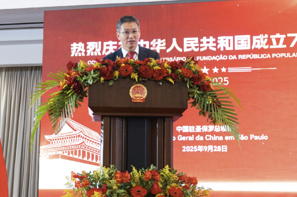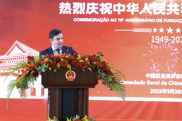 中国驻圣保罗总领馆当地时间28日晚举行招待会,庆祝中华人民共和国成立76周年。巴西外交部代表、圣保罗州议会议员、圣保罗州及市政府官员、巴西中资企业协会、圣保罗华侨华人社团、巴西友好人士及中外媒体代表等300余人出席。