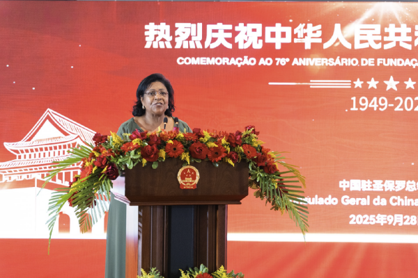 圣保罗国际关系秘书甘德拉在致辞中代表市长努内斯及市政府团队向中国国庆表示祝贺。她回顾圣保罗与中国在姐妹城市关系、经贸往来和公共服务方面长期保持紧密联系,强调中巴携手不仅能推动两国经济社会发展,也能在当今复杂的国际局势下为世界和平与繁荣作出贡献。