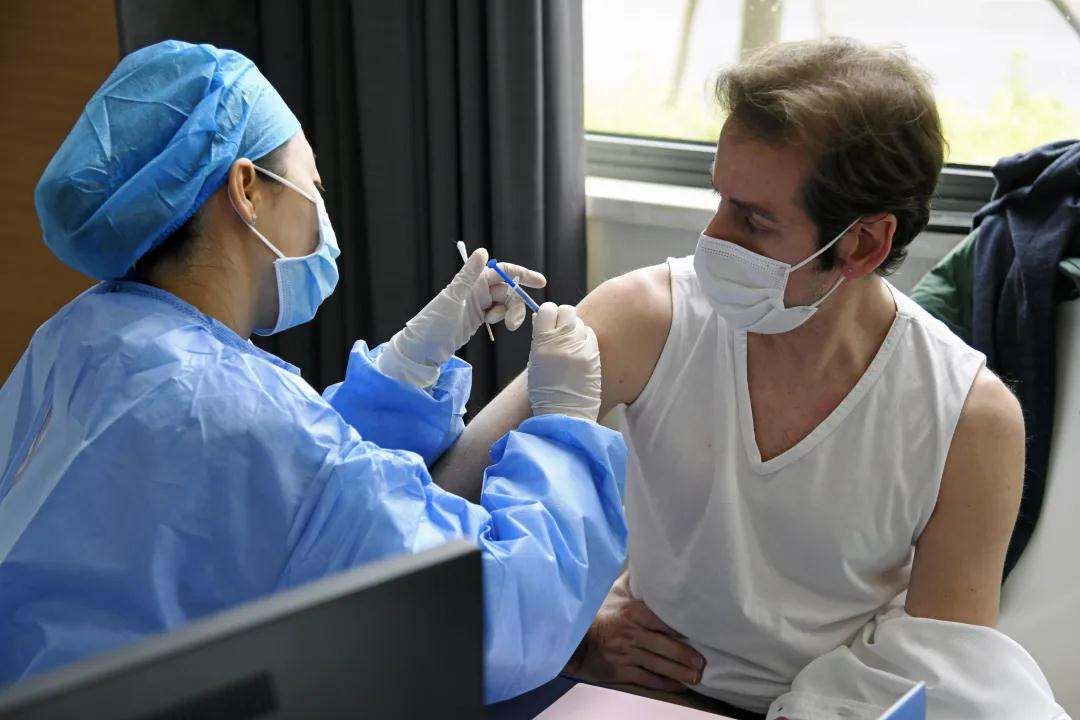 近日,中欧(常州)检验检测认证国际合作产业园中欧厅内,入园企业职工们正在有序开展新冠疫苗接种工作。