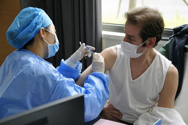 园区接种点按需设置了询问登记区、接种区、留观区、异常情况处置区等,接种工作井然有序。当天,500名职工高效完成接种,其中包括在园区内工作的外籍人士,彰显了国际合作园区的担当有为。