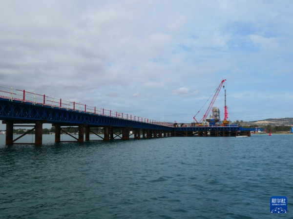 这是9月25日在突尼斯比塞大市拍摄的比塞大大桥栈桥及钢结构施工平台。新华社记者 黄灵 摄