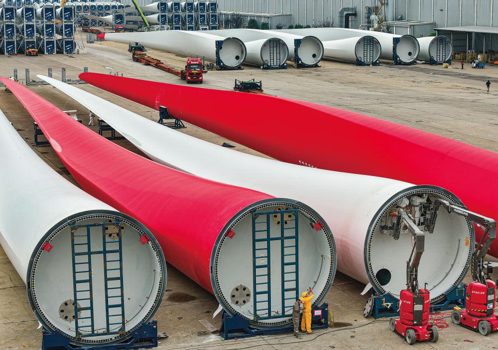 海门港风电叶片生产、装运忙。(许丛军摄)