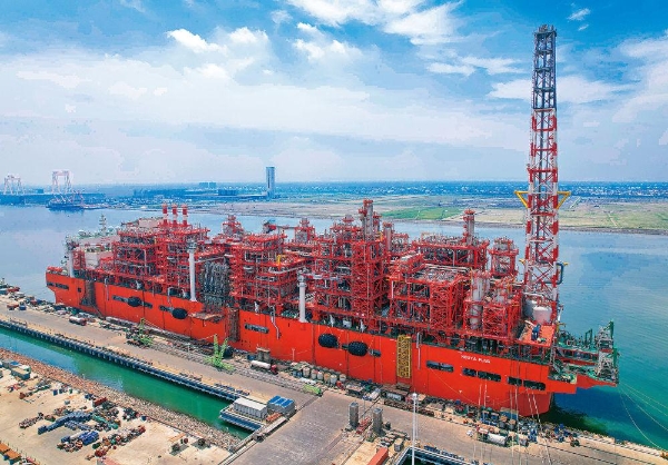 惠生清洁能源建造的LNG(浮式天然气液化装置)恩古雅号出海场景。(沈赓 摄)